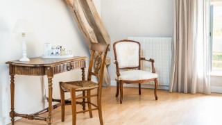 Cette chambre de 18 m2 est équipée d’un lit double 160 x 200 et de meubles de famille.